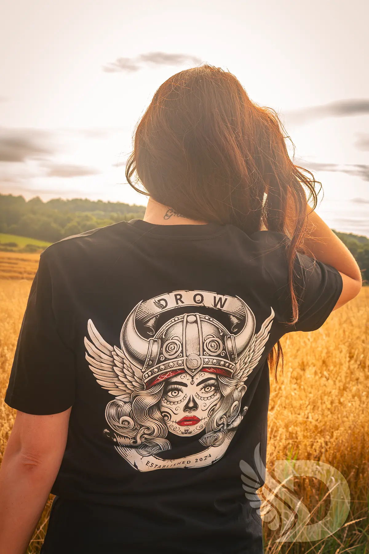 Channel the fierce spirit of the Valkyrie with the DROW Rebel Valkyrie T-Shirt. Featuring a bold, vintage-inspired design of a warrior woman, this tee embodies the essence of bravery, beauty, and the unyielding spirit of those who fight for what they believe in. Crafted for the fierce and fearless, this t-shirt is more than just apparel—it’s a rallying cry to rise above and lead with power and grace.